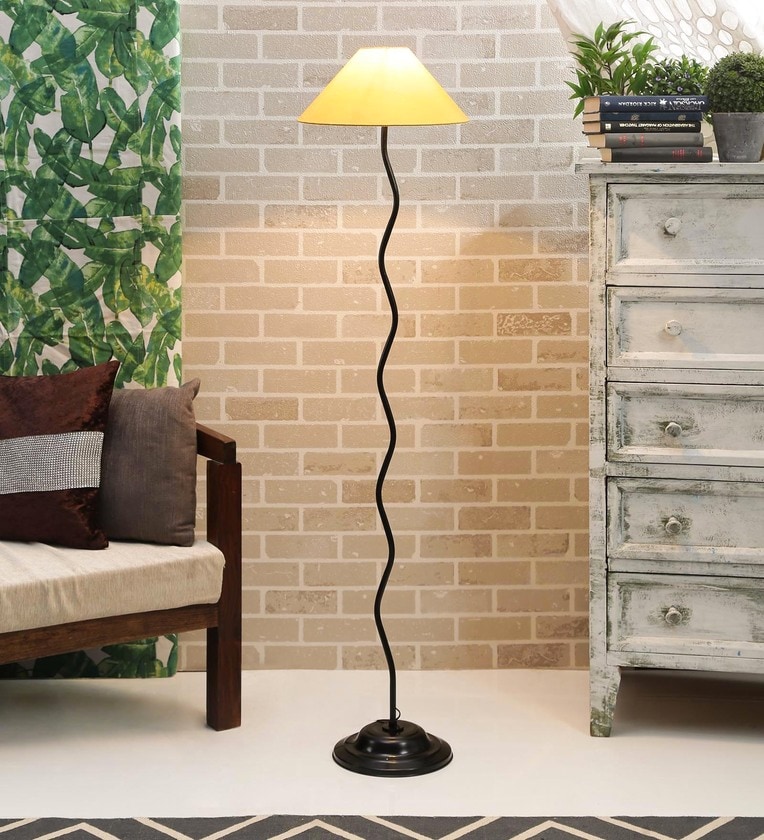 Yellow Fabric Shade Club Floor Lamp With Metal Base