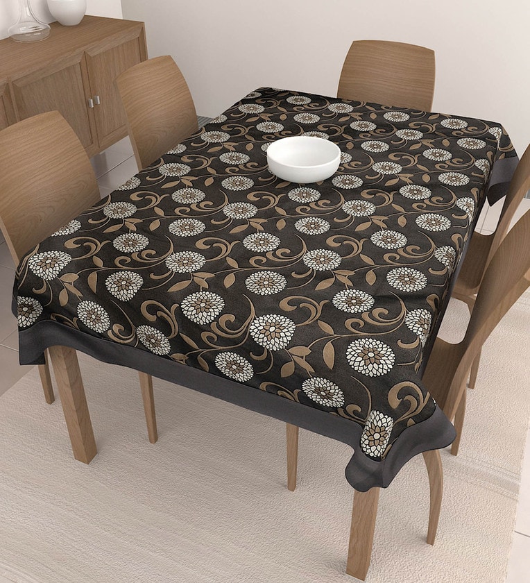 Floral Pattern Black Polyester 90X60 Inch Table Cloth