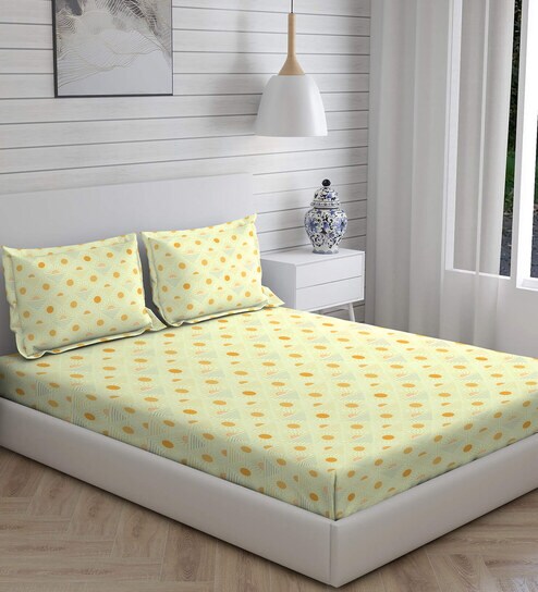 Yellow Floral 146 TC Cotton King Sized Bed Sheets with 2 Pillow Covers