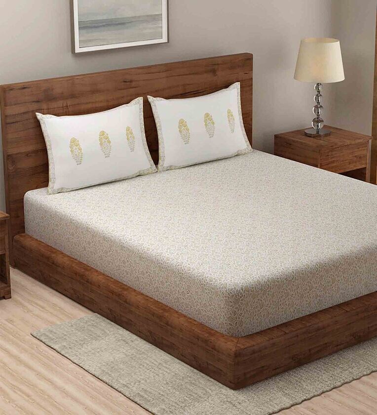 Yellow Floral 180 TC Cotton Single Bedsheet with 1 Pillow Cover