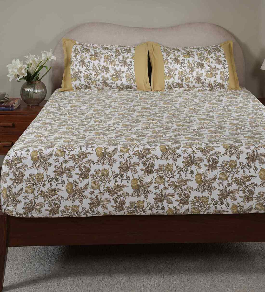 Yellow Fruit Print 200 TC Cotton Single Bed Fitted Sheet with 1 Pillow Cover Sensory Bloom Collection