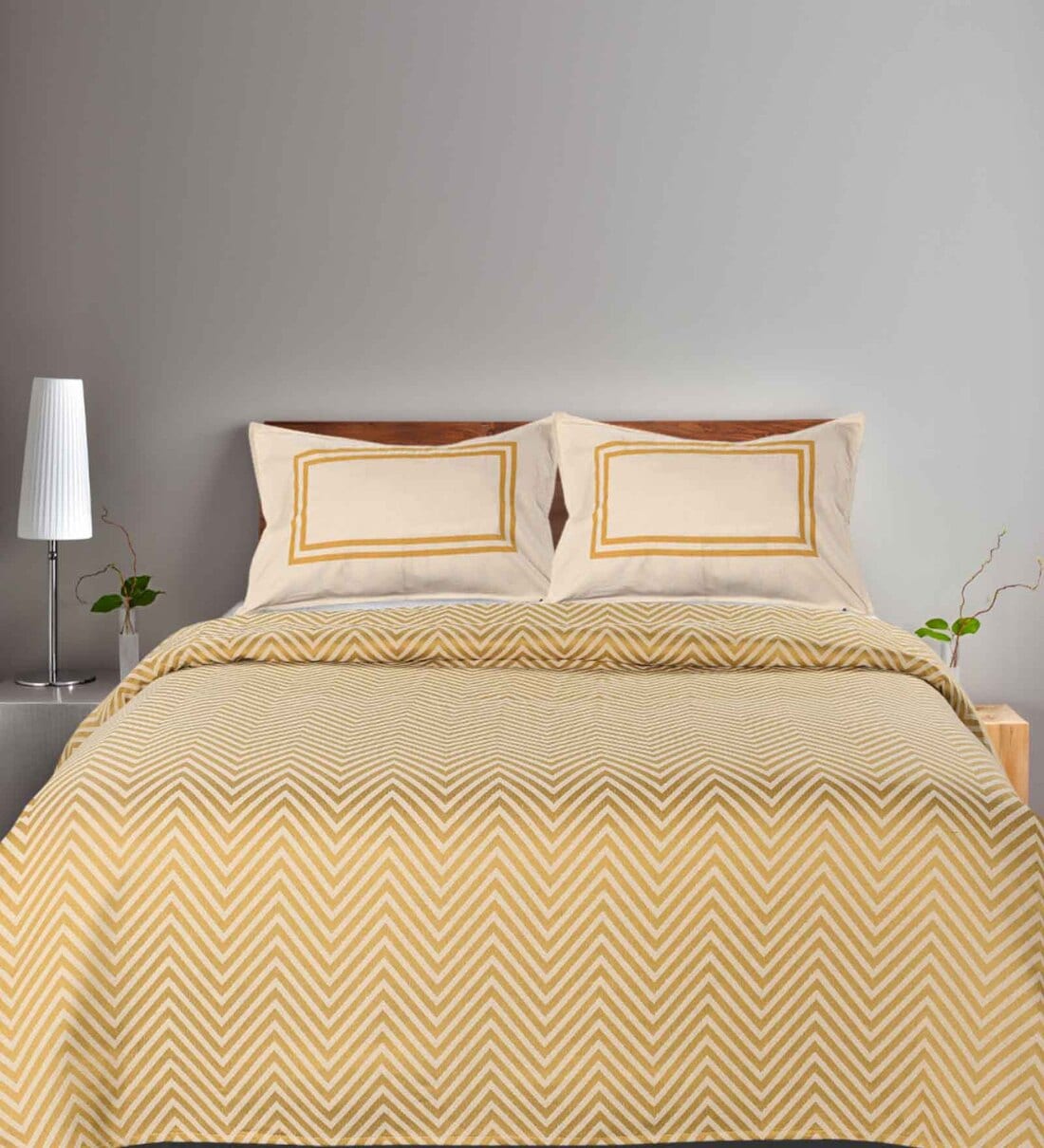 Yellow Geometric 144 TC 100% Cotton King Sized Bed Sheets with 2 Pillow Covers
