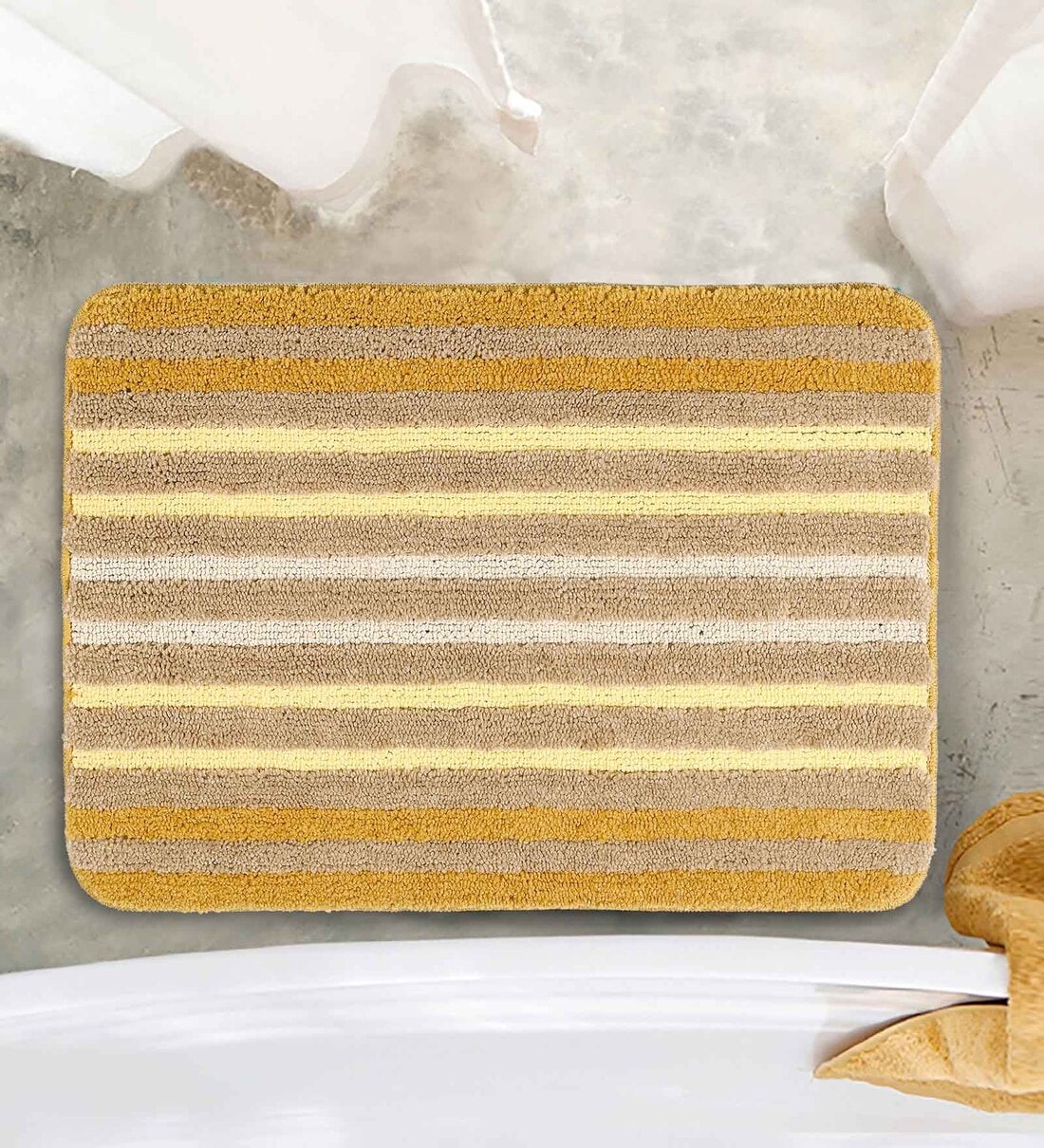Yellow Geometric Microfiber 23x16 Inches AntiSkid Bath Mat