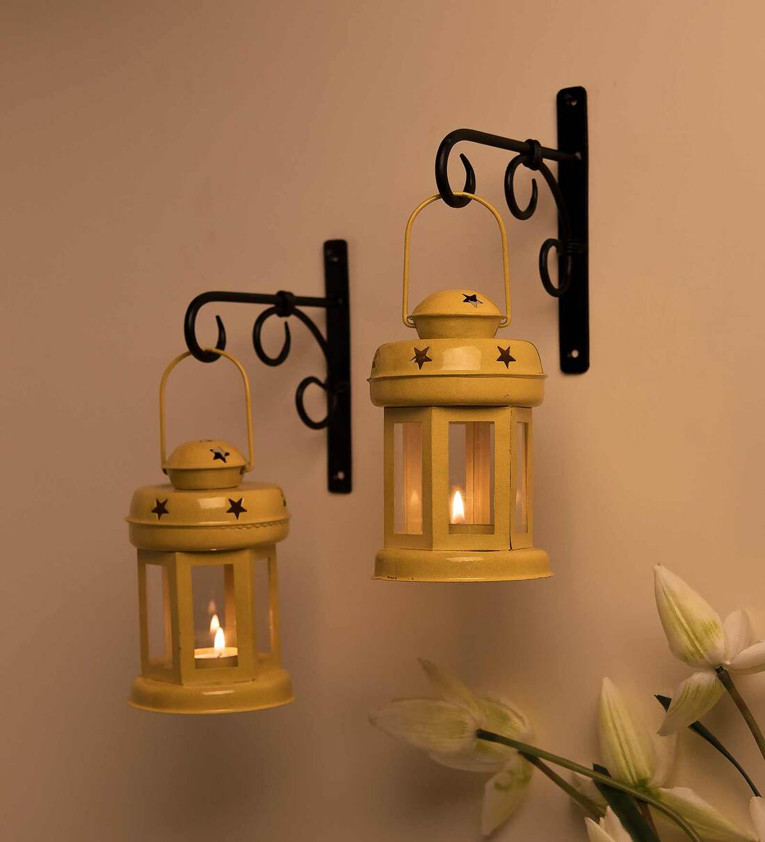 Bling (Set Of 2) Yellow Metal Wall Tea Light Holders