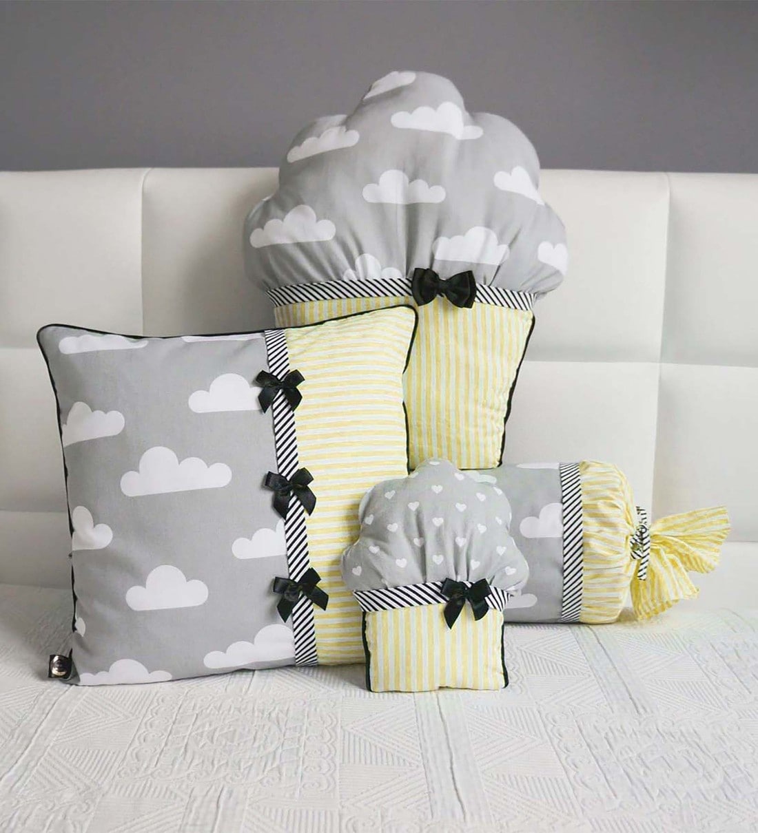 Yellow and Grey Microfiber Cupcake Decorative Cuddle Cushion (4pcs)