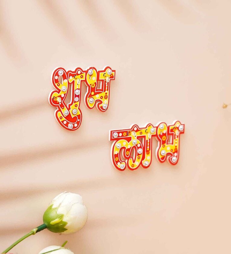 Yellow & Orange Wood Shubh Labh Stickers for Wall Door