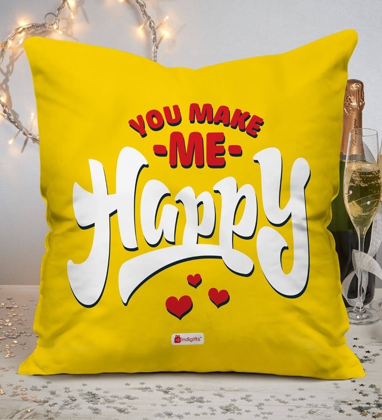 Yellow Poly Cotton Quotes 12x12 inches 1 Cushion Cover With filler