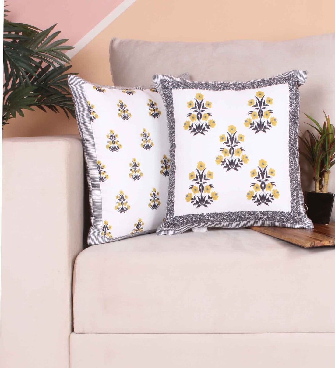 Yellow Polycotton Floral 24x24 inches Cushion Covers (Pack of 2)