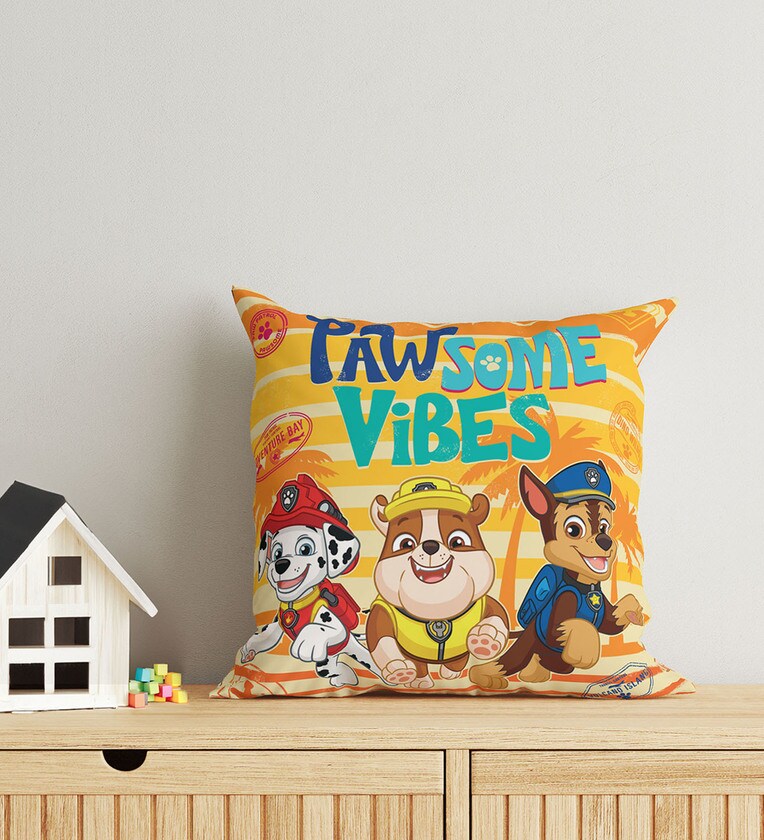 Yellow Polyester Paw 16x16 inches Reversible Kids Cushion (1 Pc)