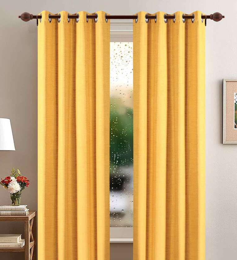 Yellow Polyester Solid 9 Ft Blackout Eyelet 2 Door Curtains
