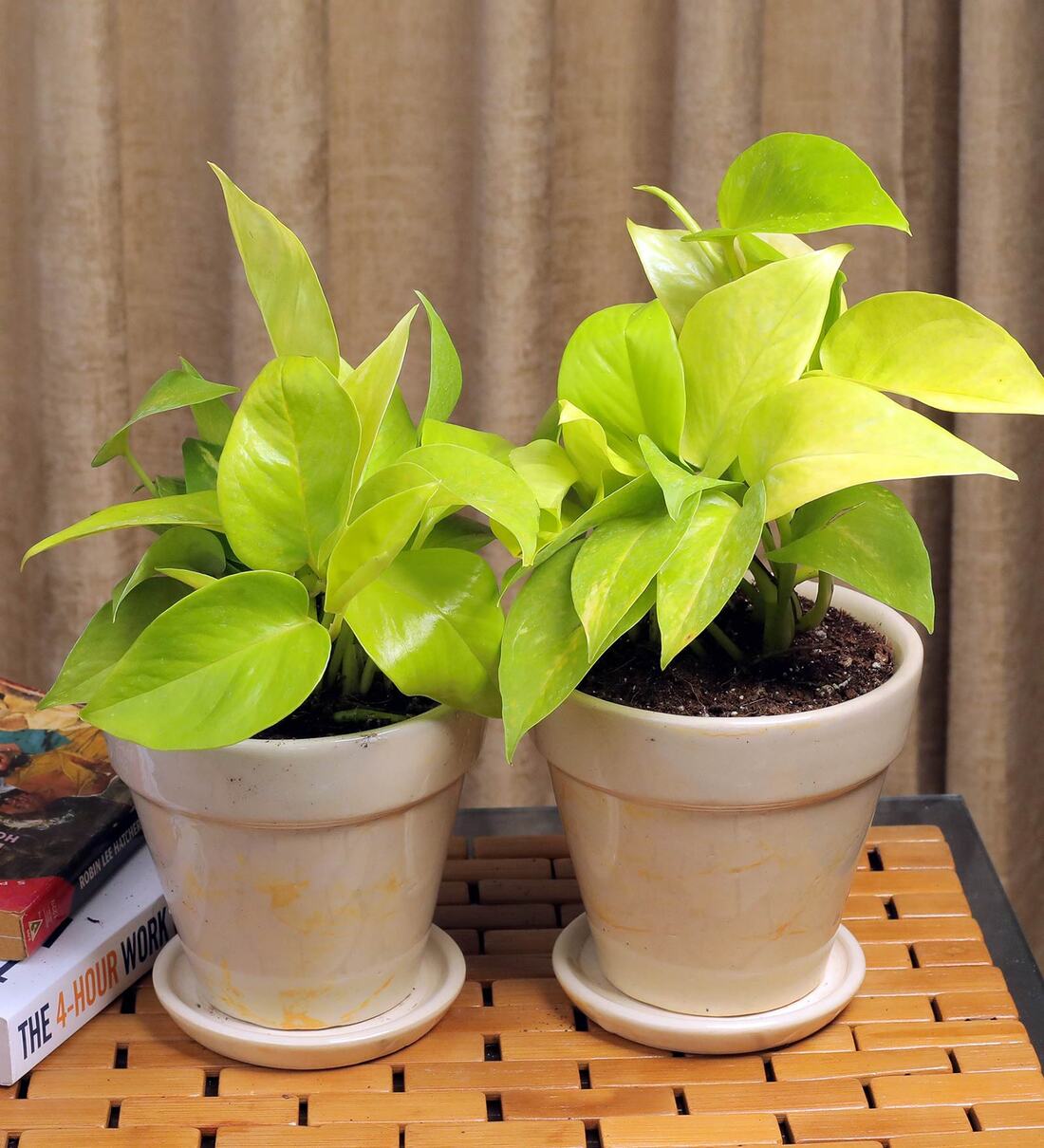 Yellow Scindapsus Gold Medium Natural Plant In Ceramic Pot, Set Of 2