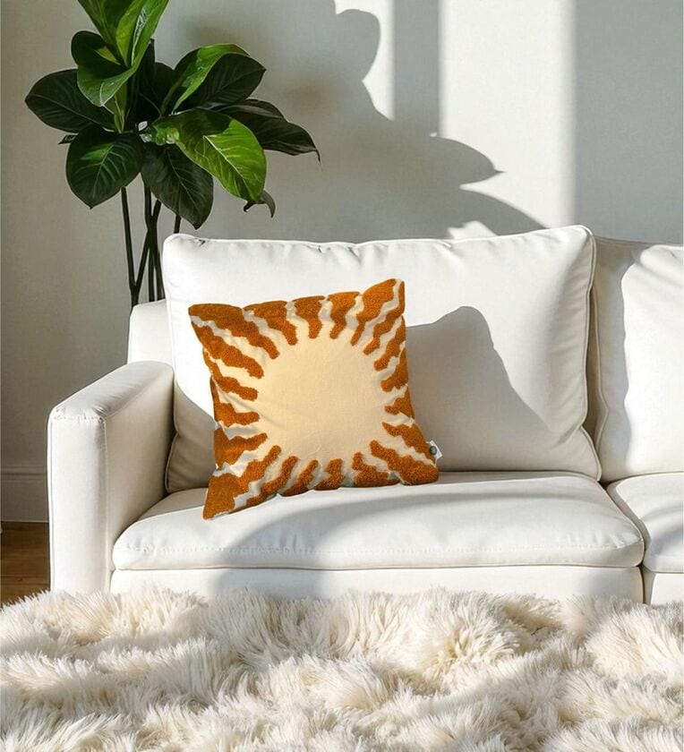 Channel the beauty of warm, golden evenings with the Golden Hour Embroidery Aari Work Cushion Cover by Lushlyf. Featuring a radiant sunburst embroidery design in ochre on a cream cotton slub base, this cover brings an inviting, textural charm to your space. Perfect for modern, rustic, or bohemian interiors, it adds depth and style while keeping comfort at its core. Specifications Size: 18 x 18 inches Material: 100% Cotton Slub with Embroidery (Aari Work) Color: Ochre on Cream Base Closure Type: Hidden zipper for a seamless finish Product Includes: 1 Cushion Cover (Insert not included) Features Radiating Aari embroidery design evoking sunlit warmth Pure cotton fabric ensures softness and breathability Adds cozy textural detail to sofas, beds, and reading corners Concealed zipper for a neat, polished look