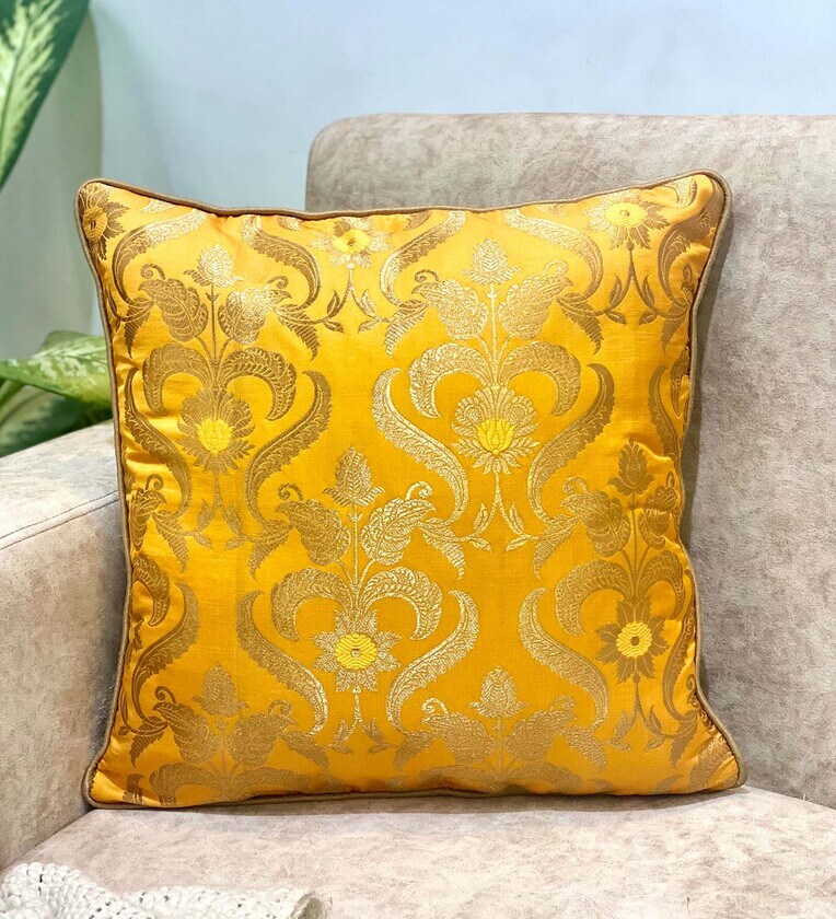 Beautiful collection of classic silk dupion, hand painted and embroidery with metallic silver thread and sequins, from the heritage looms of banaras to amp up the special corner of your home. Will suit all types of sofas, couch, diwan and beds.