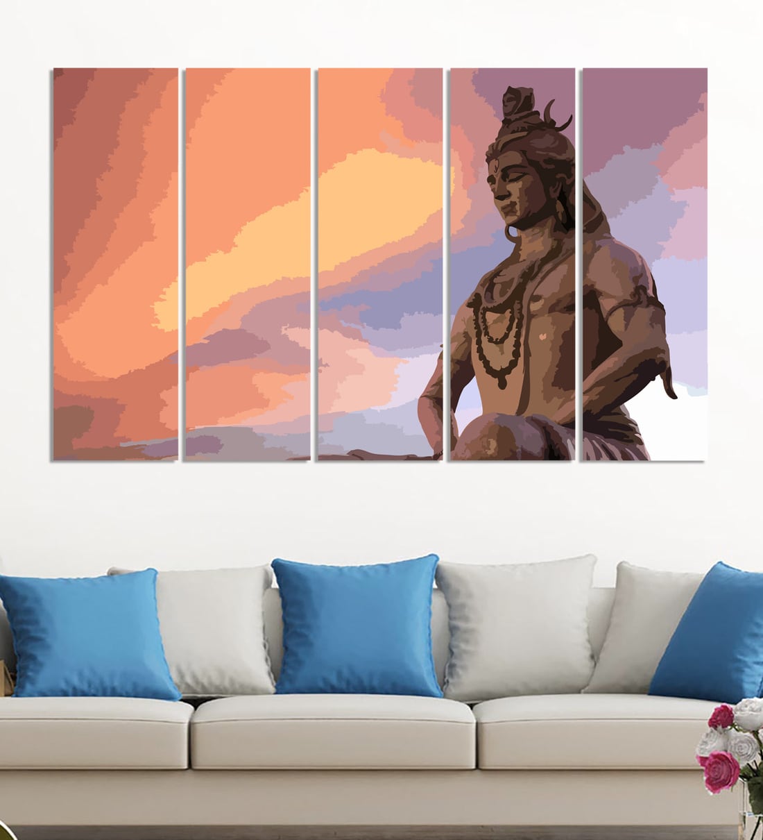 Yellow Wood Framed Spiritual Art Panel Set of 5
