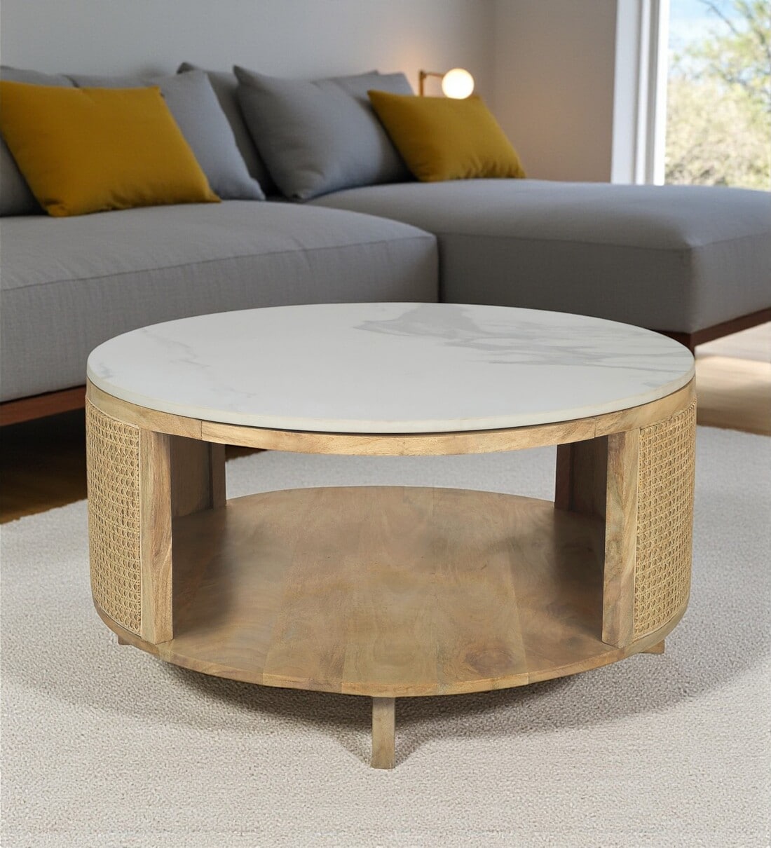 Yesemia Mango Wood Coffee Table In Natural Finish With Porcelain Top