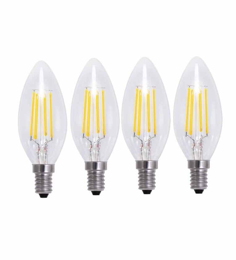 Origin Glass LED Filament Bulb-6W-Candle Shape-E14 Base (Cool White) - Pack of 4
