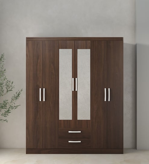 Yoshihisa 4+ Door Wardrobe in Regato Walnut Finish with Mirror