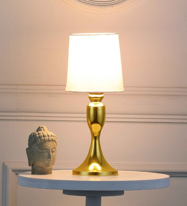 Zehra Iron Table Lamp with Cotton Fabric Lampshade (Gold & White)
