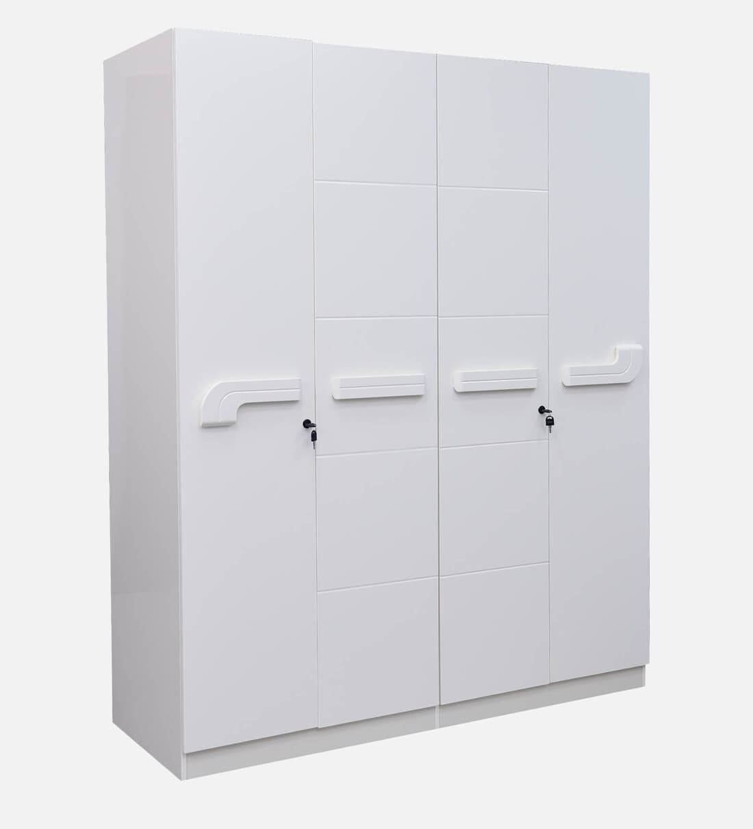 Rome Italian 4 Door Reflective high gloss finish wardrobe is the stylish storage solution you have been searching for. This stylish wardrobe design blends easily with most decor while adding earthy richness due to its full white colour. This wooden almirah has an internal arrangement that comprises two spacious drawer, multiple shelves, and a long aluminum rod which will make daily folding or hanging of clothes easy. The shelf and garment rod help showcase your apparel, ensuring you can always find your favourite shirt or trouser quickly. Smaller accessories can be conveniently housed in the inbuilt drawer of this designer closet that is provided in this wooden almirah. Drawer Storage with Safety lock helps to keep some documents and jewels safely