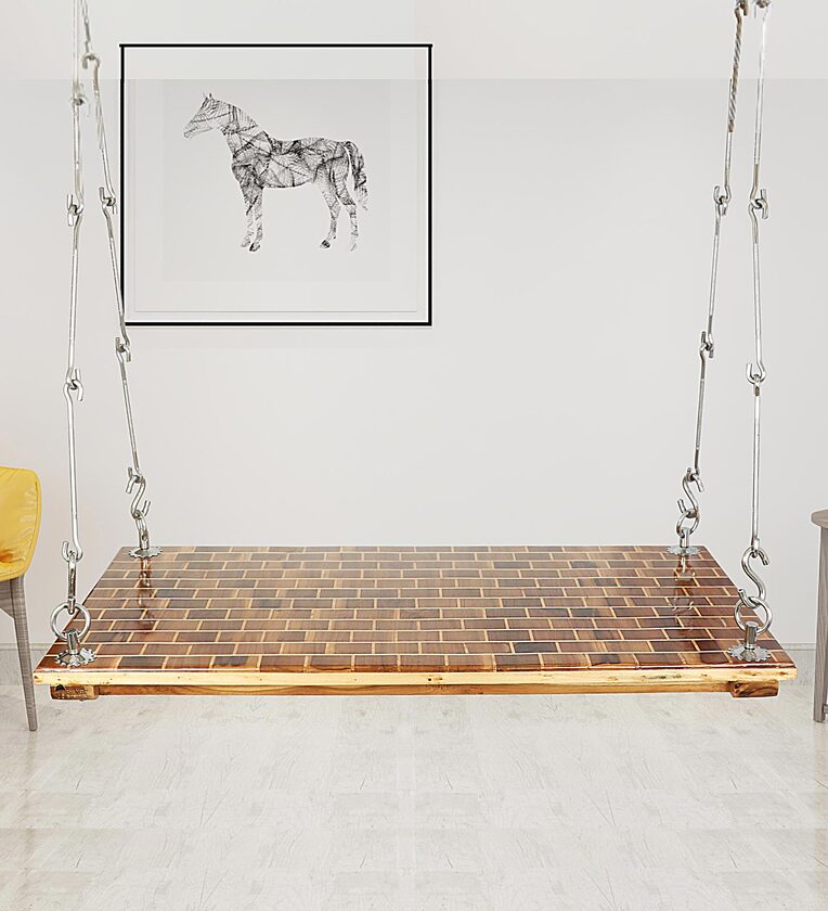 Ziegel by Riyo Moda 4ft X 2ft Teak Wood Two Seater Swing with Stainless Steel Accessories Set for Indoor and Balcony Living