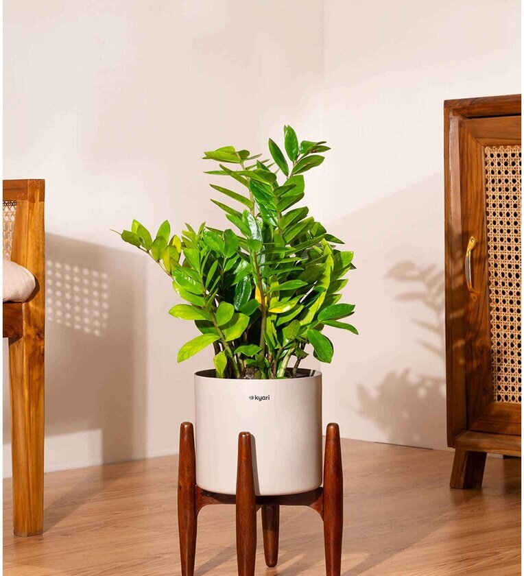 1 ZZ Green live plant with Zen 8 inch self watering metal planter