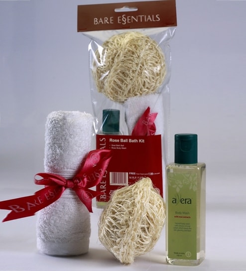 Avera + Bare Essentials Rose Ball Bath Kit (Sisal Bath Ball + Rose Body Wash 100ml)