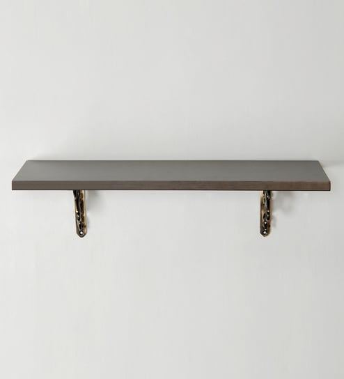 Deco Home Brown Solid Wood Particle Board & Aluminium Wall Shelf with Antique Brass Brackets